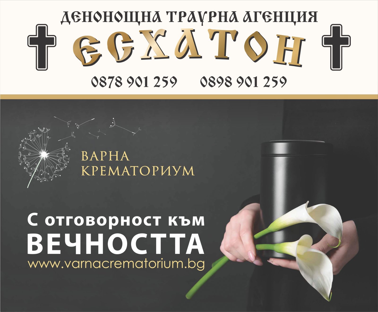 Визитка на Есхатон – първата мобилна траурна агенция в страната.